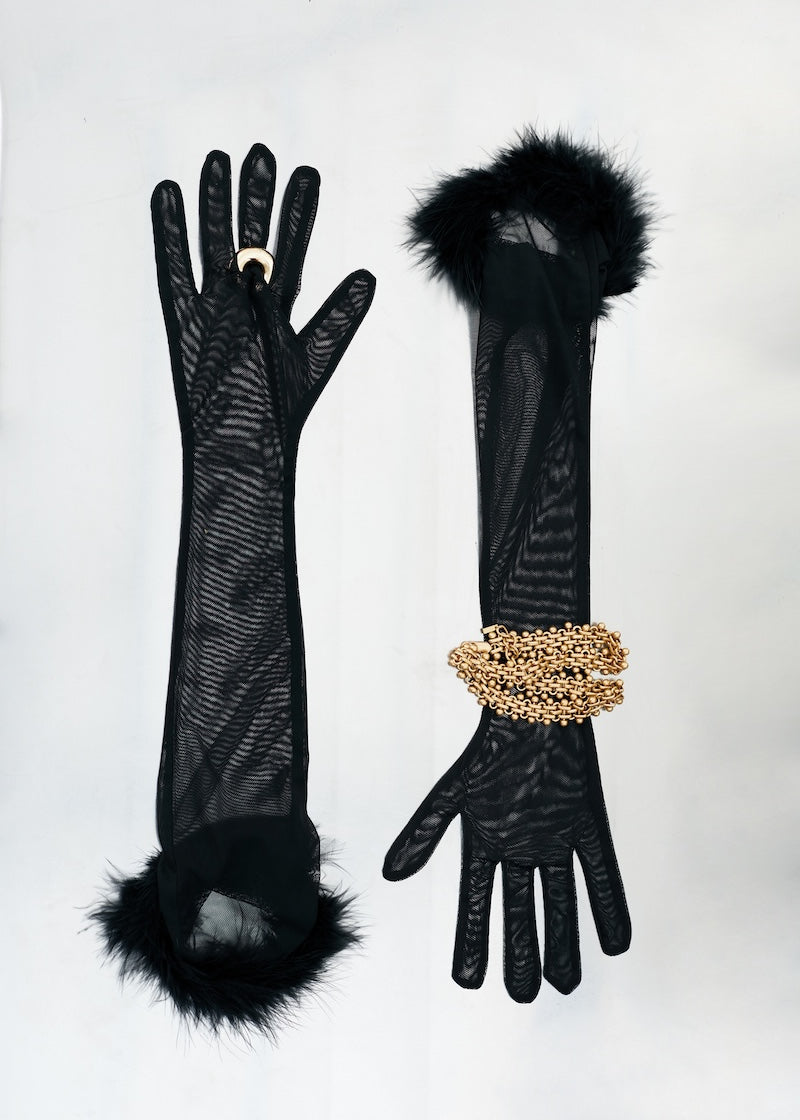 Gloves with feathers in Black