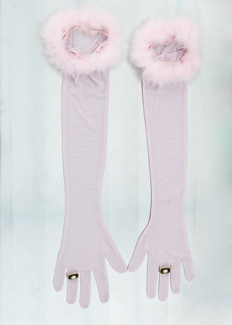 Gloves with feathers in Powder pink