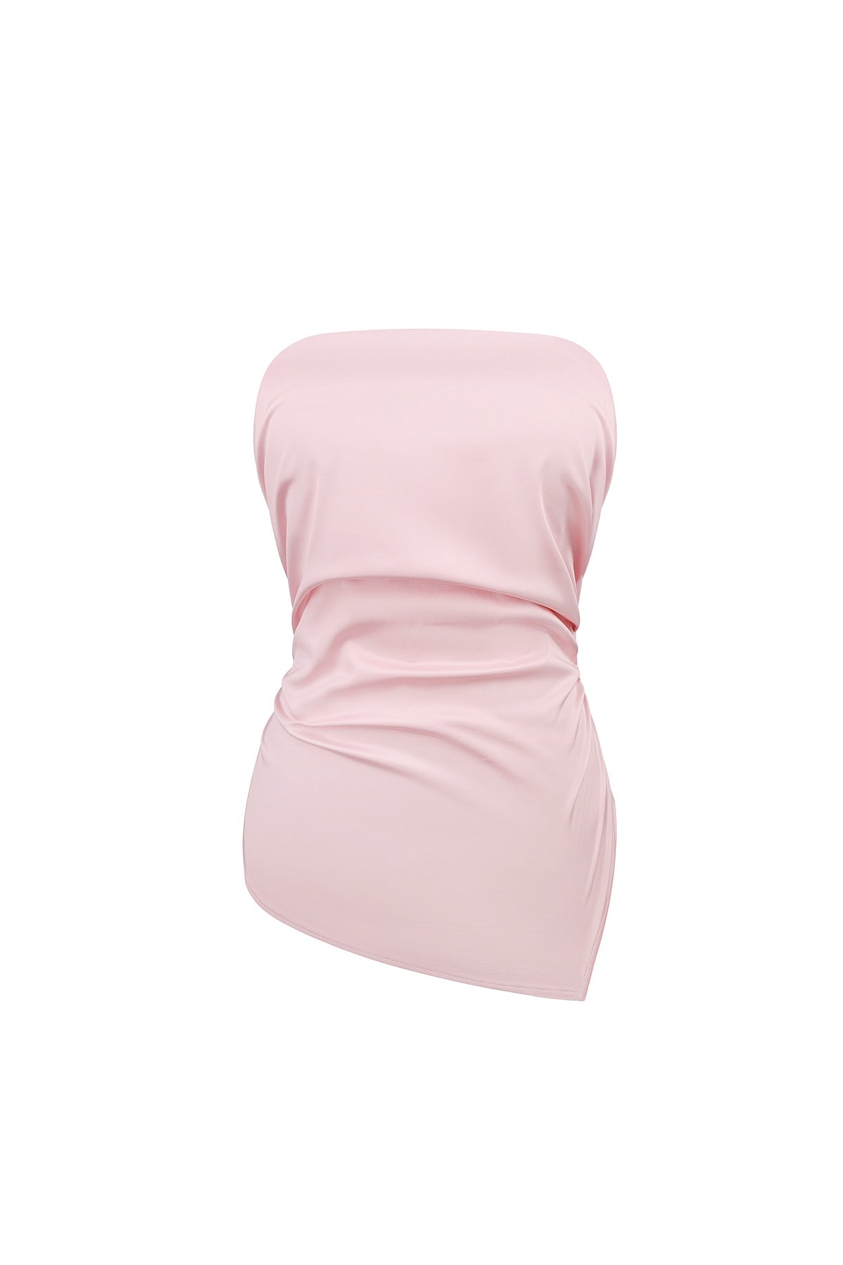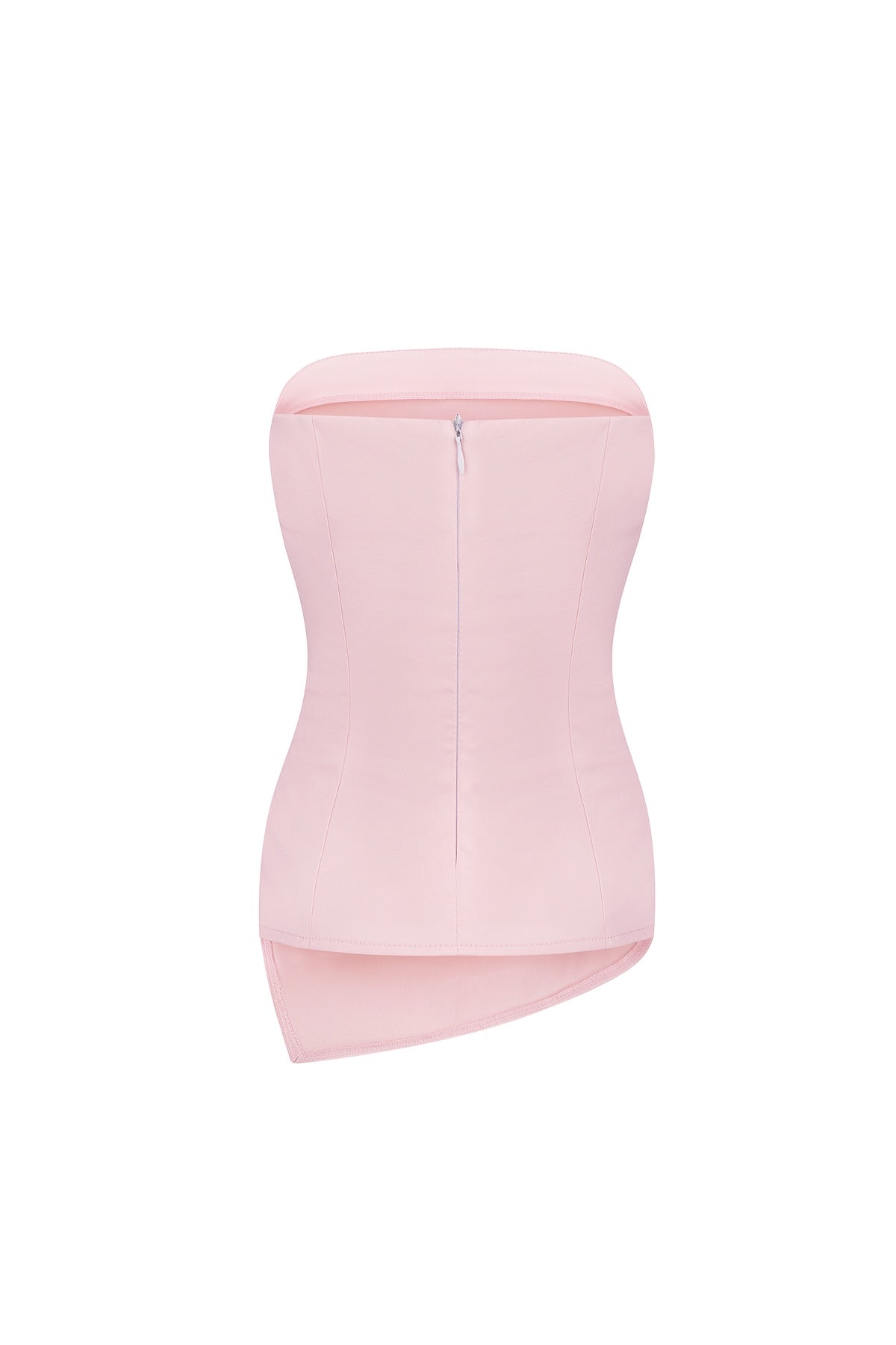 A minimalist strapless corset top made from dense suiting fabric that holds its shape well and accentuates the figure. The anatomical fit and delicate lines create a sculptural effect without unnecessary stiffness.