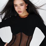 Bodysuit with a corset-style cut and sheer inserts in Black