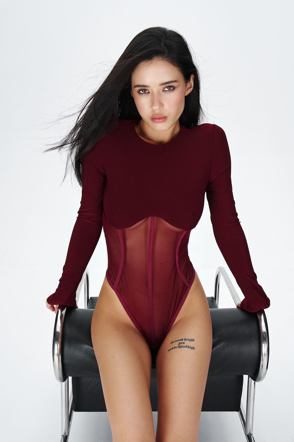 Bodysuit with a corset-style cut and sheer inserts in Burgundy
