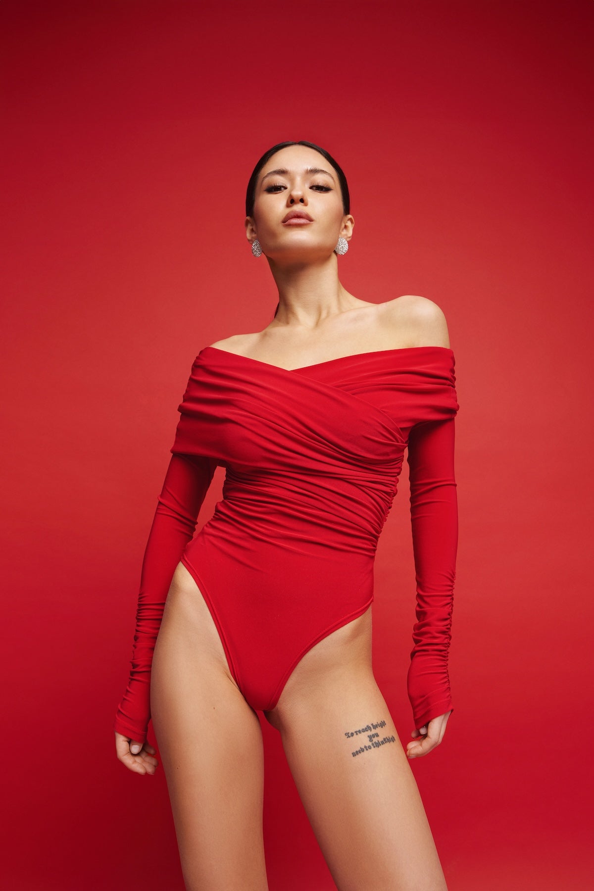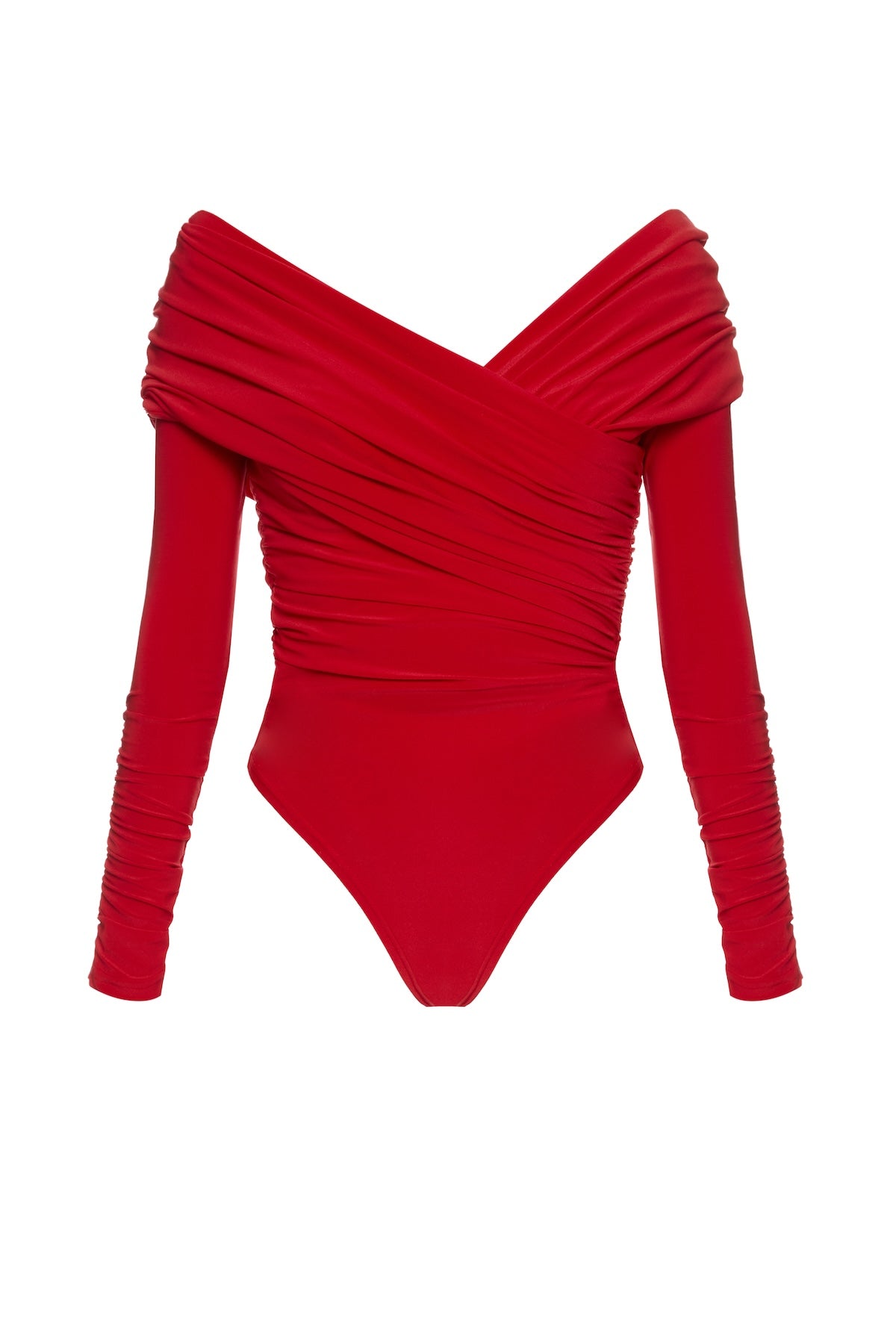 Bodysuit with a wrap front and gathers in Red