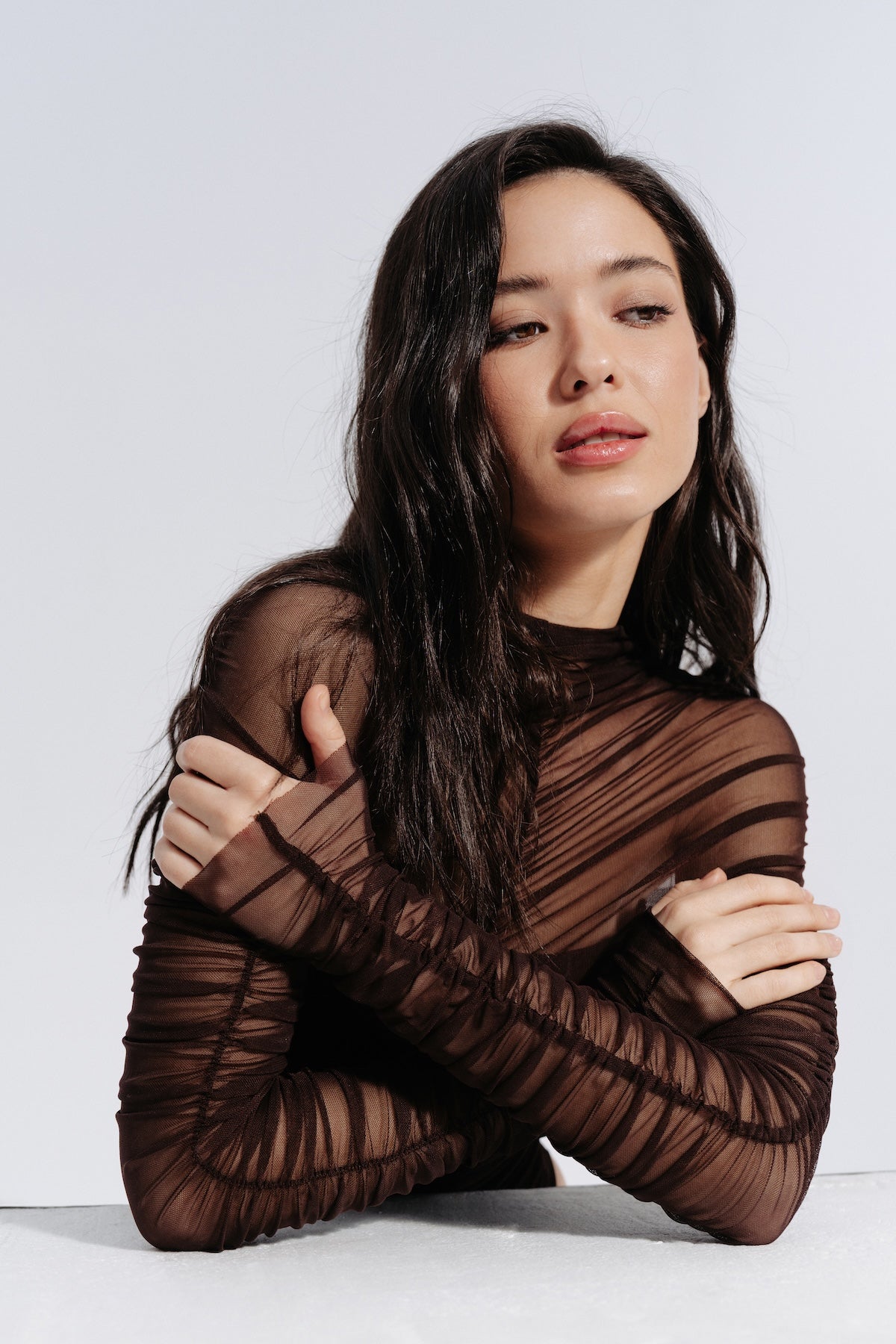 Semi-sheer sleeves with delicate ruching — a standout accent piece you can add to your favorite bodysuit. Light, airy, and flexible, they create an elegant silhouette and add volume and femininity to your look.