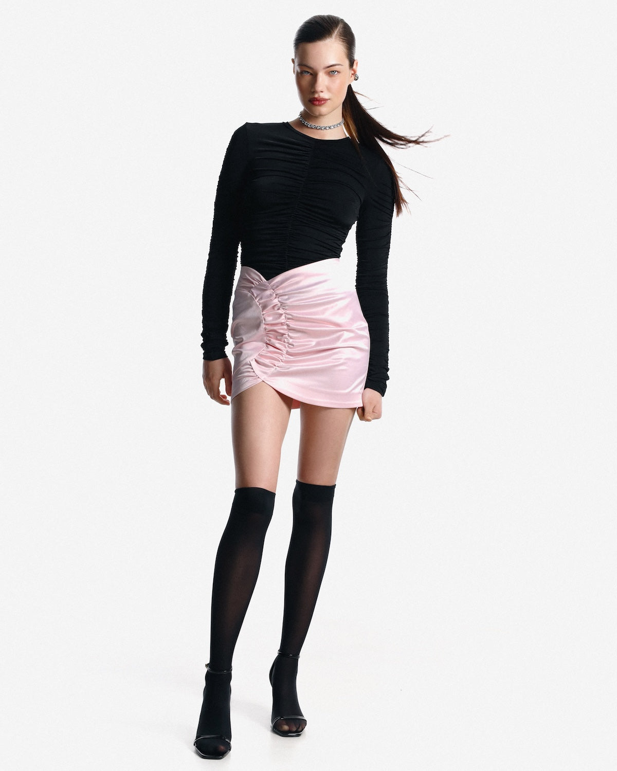 This skirt pairs perfectly with classic shirts and bodysuits, as well as more relaxed tops and blazers. An ideal choice for evening outings, romantic dates, and stylish everyday looks.