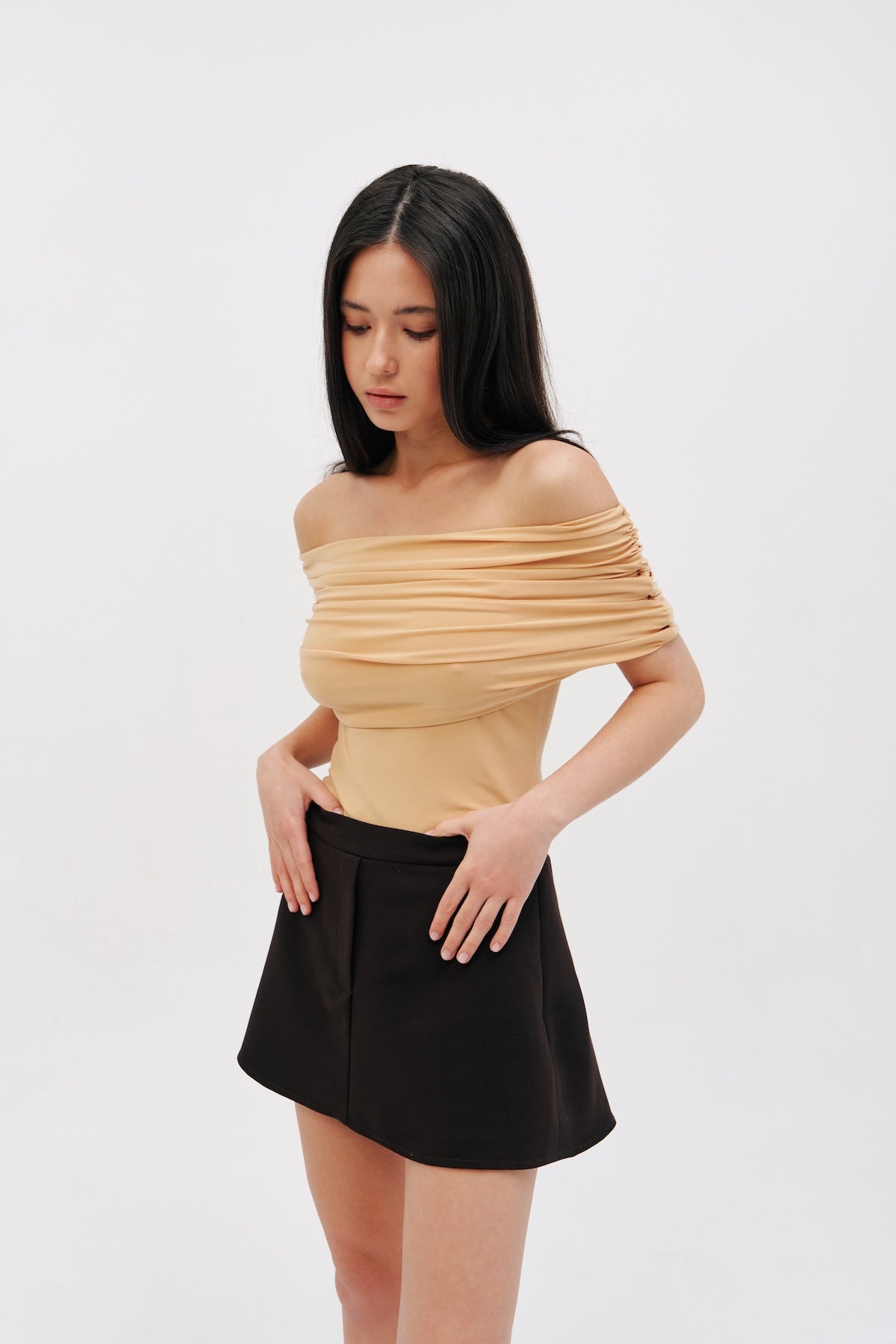 This model looks like a sleek mini skirt, but features hidden shorts inside — comfort without compromise. Made from premium suit fabric, it holds its shape and is not see-through.