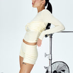 Soft knit shorts – lightweight and comfortable, almost unnoticeable on the body. They are designed as a set with a top made from the same fabric, but can also be easily paired with other pieces: oversized sweaters, hoodies, or jackets.