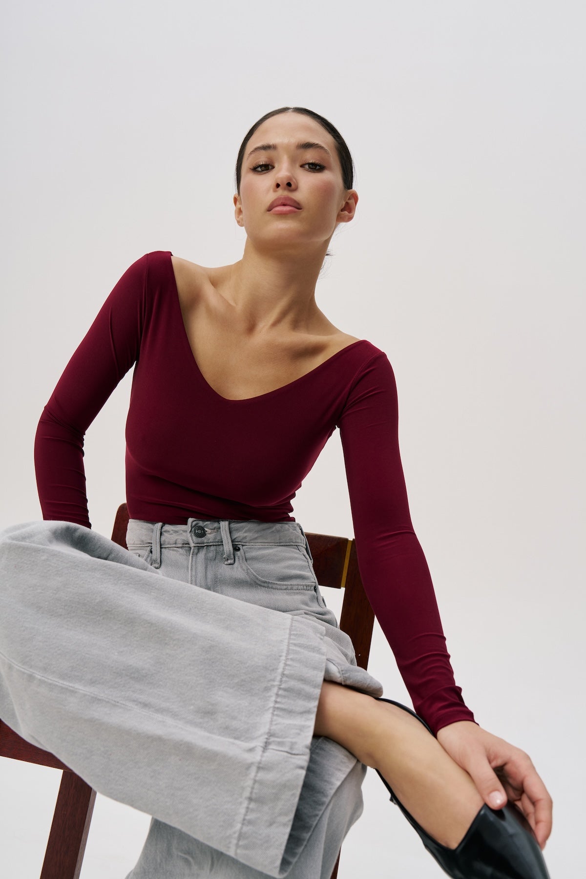 V-neck bodysuit in Burgundy