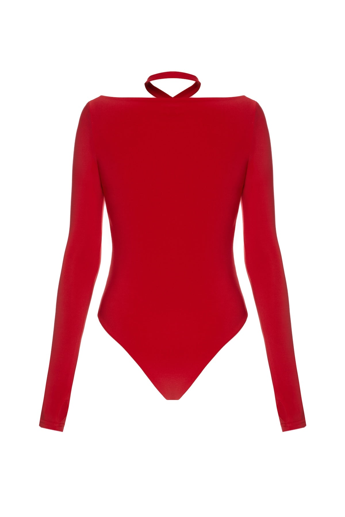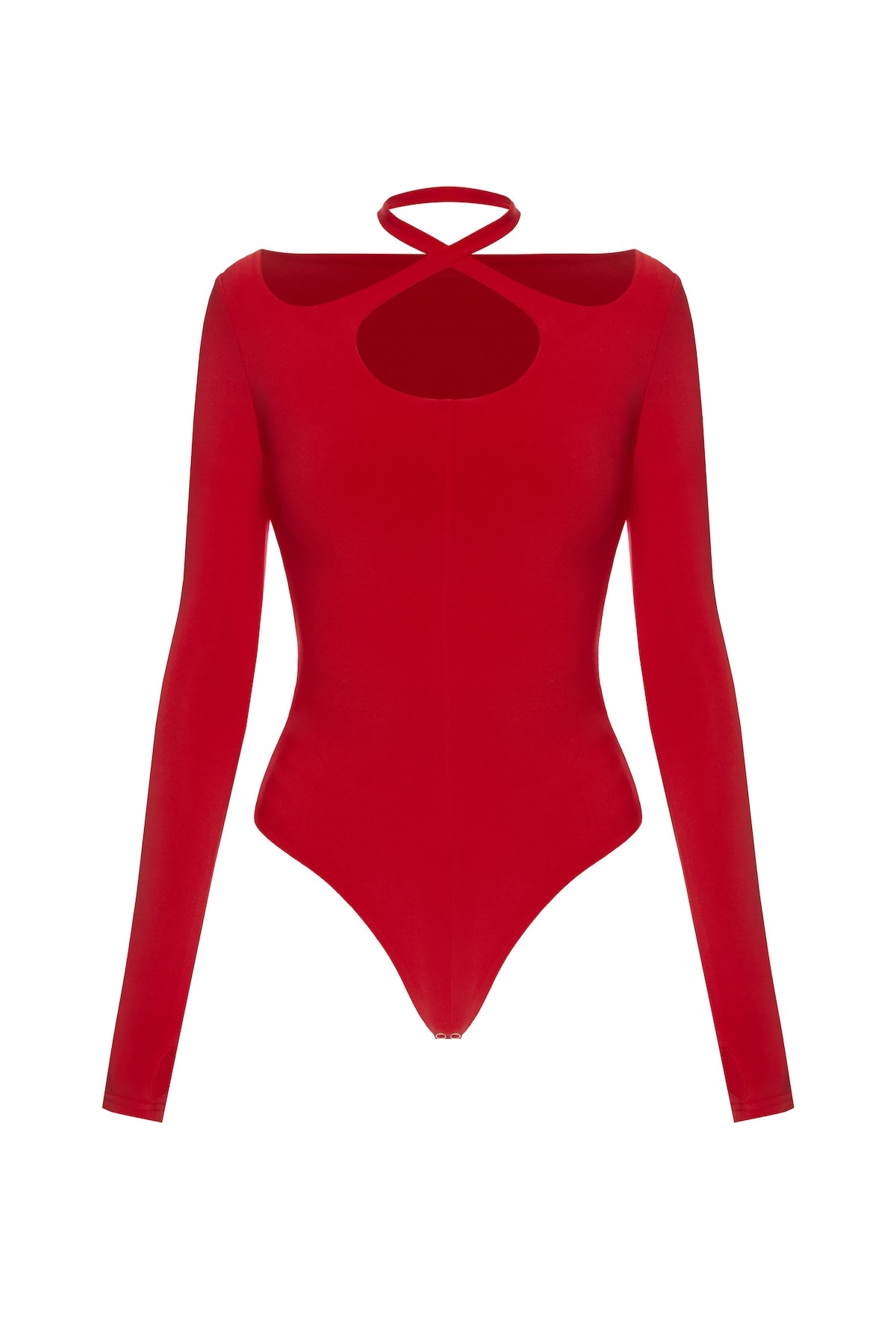 Боді з перехрестям на шиї – ідеальний вибір для створення елегантного образу. Довгі рукави з вирізами для великих пальців додають витонченості та забезпечують комфорт у холодну пору. Застібка на кнопки дозволяє легко одягати й знімати боді, роблячи його практичним елементом гардероба.