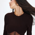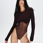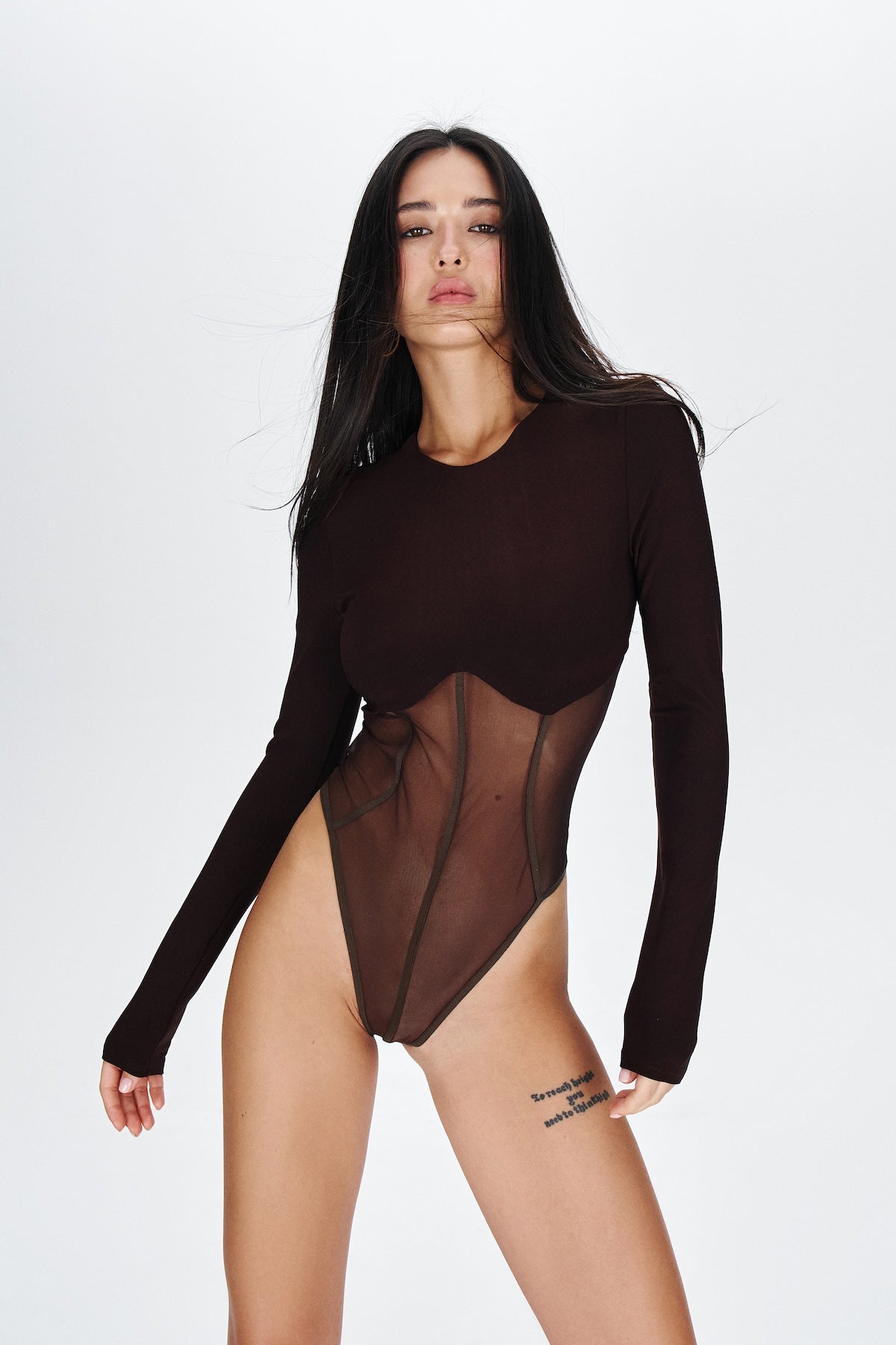 Боді з корсетним кроєм та прозорими вставками шоколадний