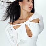 Боді з вирізами і вузлом молочний