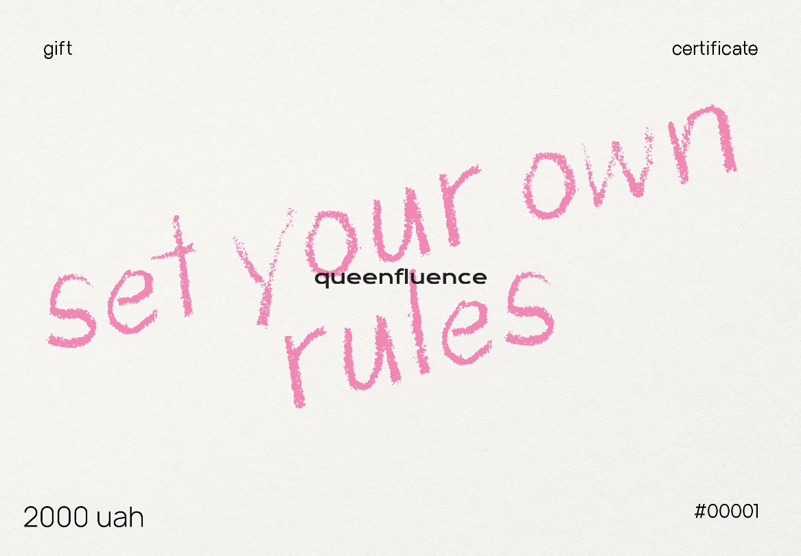 Подарунковий онлайн сертифікат від Queenflunce на суму 2000 гривень.