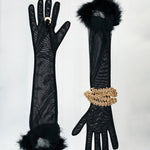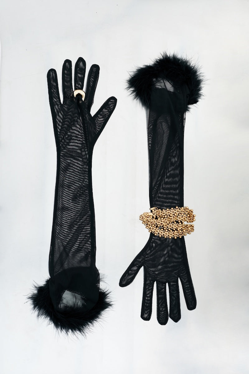 Довгі рукавиці з напівпрозорої сітки, що додають образу витонченості та fashion-акценту. Легка текстура матеріалу красиво облягає руку, створюючи елегантний силует.