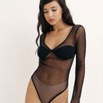 Витончене боді з напівпрозорої сітки створене для того, щоб підкреслити жіночність і впевненість у собі.